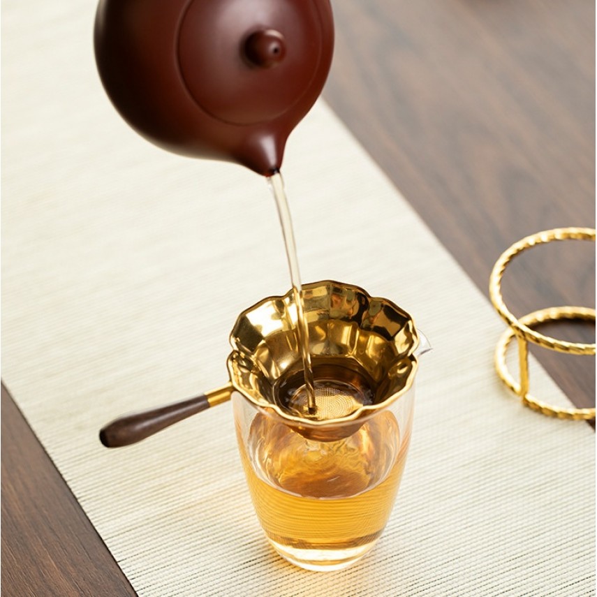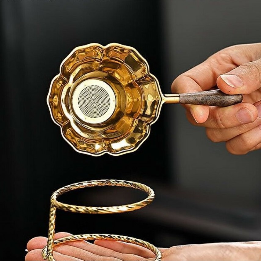 Вишукане чайне сито з виразною формою квітки та благородним золотим покриттям — аксесуар для тих, хто цінує естетику й чистоту настою. Елегантна чашоподібна форма з м’якими пелюстками робить його не лише функціональним інструментом, а й прикрасою чайного простору.