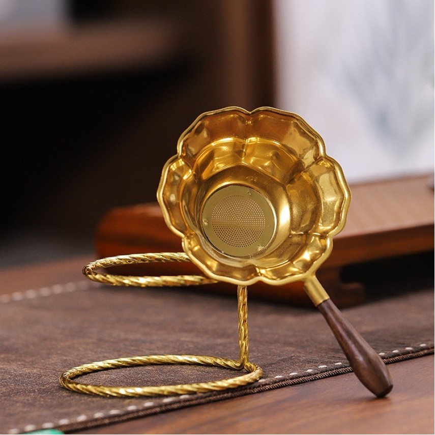 Вишукане чайне сито з виразною формою квітки та благородним золотим покриттям — аксесуар для т..