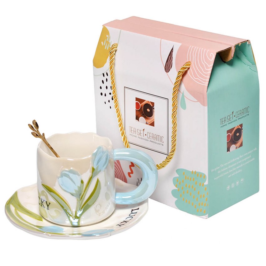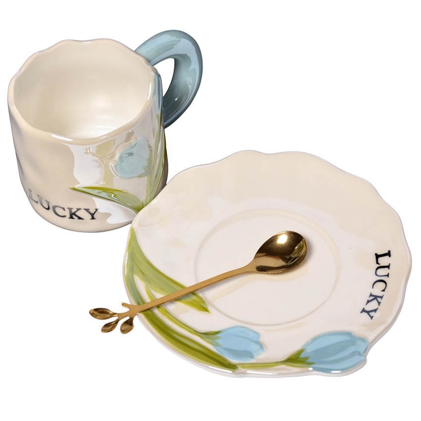 У комплекті йде блюдце в тон, яке елегантно завершує образ. Доповнює композицію витончена металева ложка, завершення якої оформлене у вигляді гілочки з листочками — тонка деталь, натхненна природою.