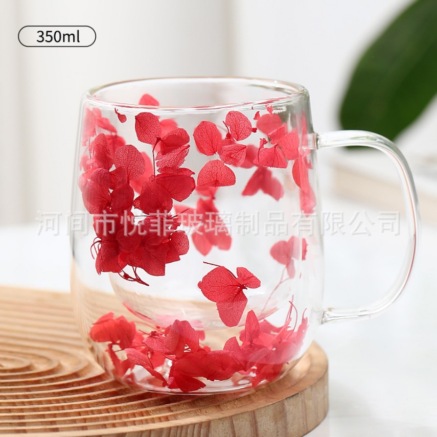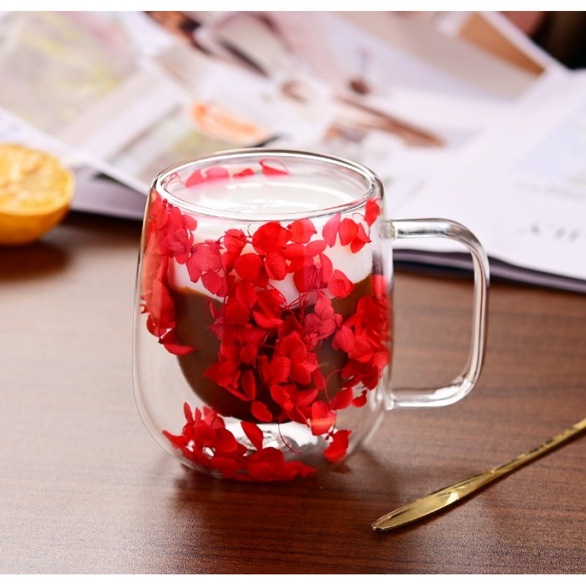 Чашка подвійне скло «Червона гортензія», 350 мл