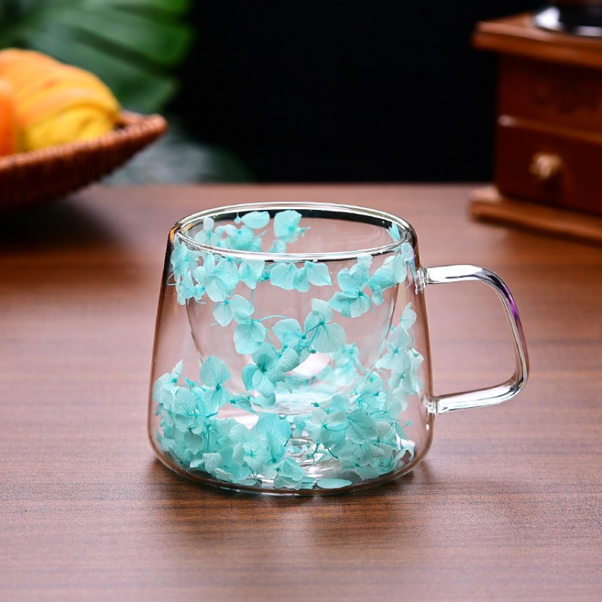 Як ранок у саду після літнього дощу — ця прозора чашка з декором із синіх пелюсток гортензії наповнює простір тишею, прохолодою та натхненням. Гортензія, що уособлює щирість і спокій, перетворює кожне чаювання на момент перезавантаження та внутрішньої гармонії.