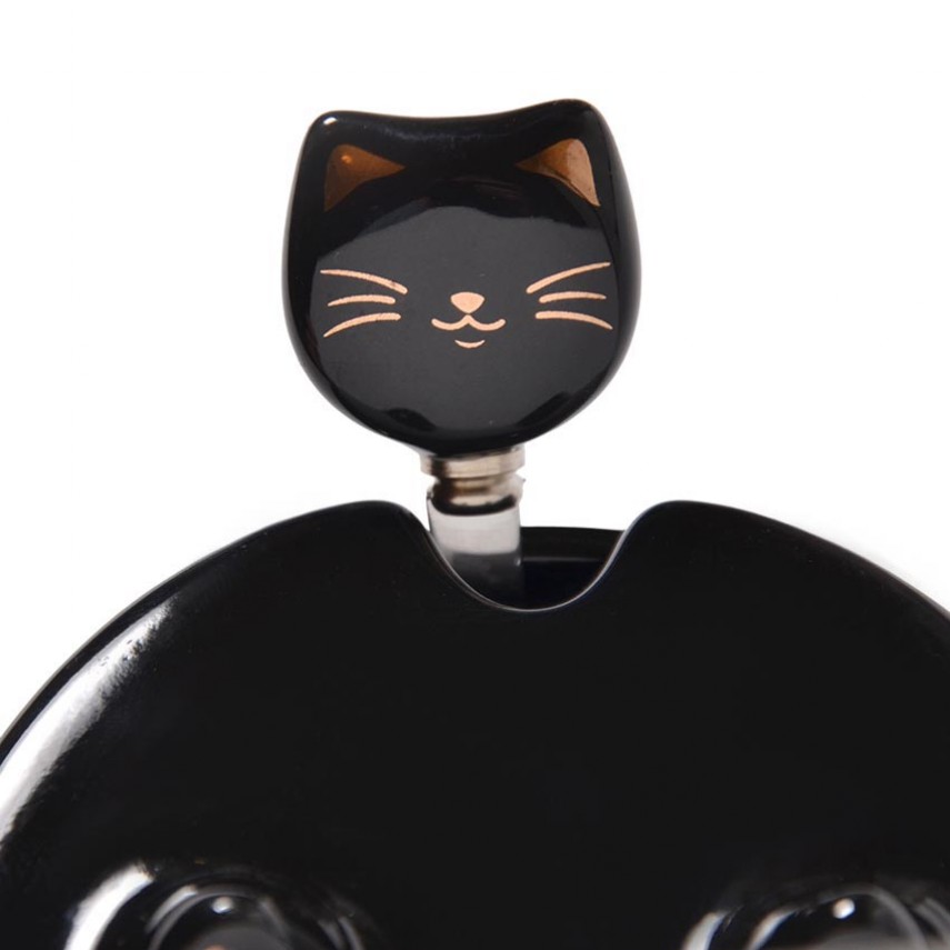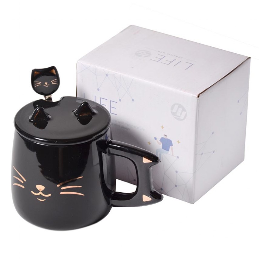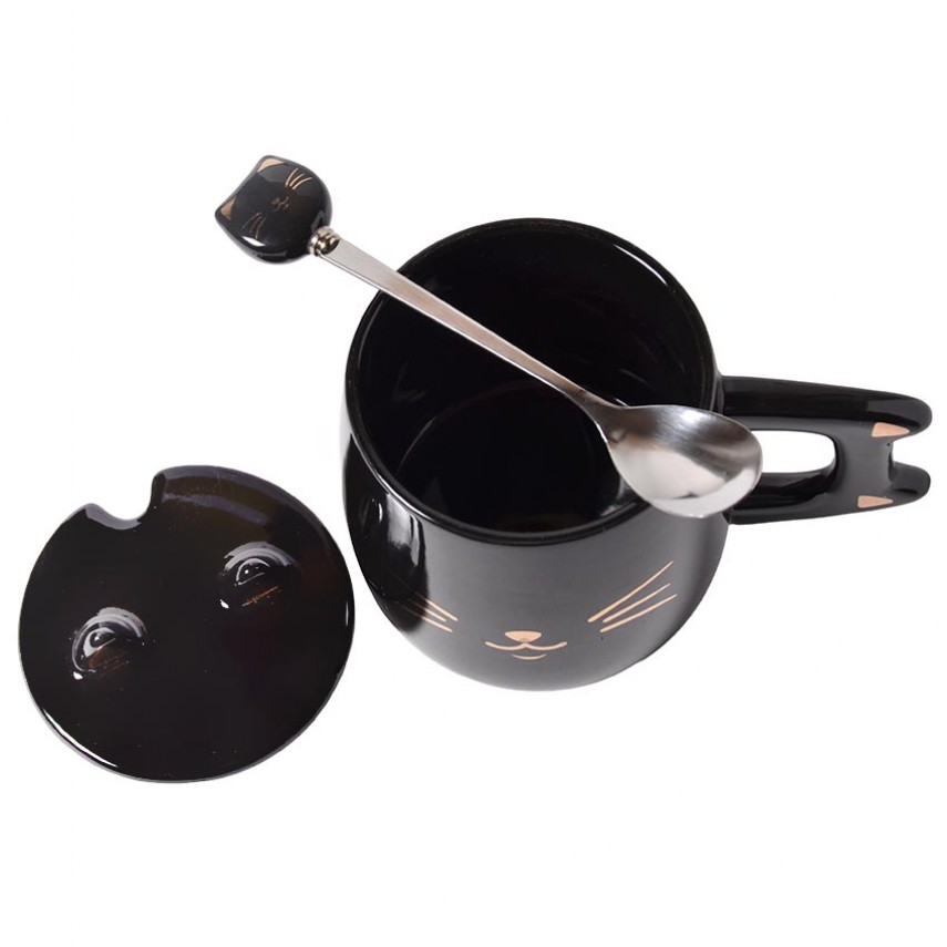 Мінімалізм і чарівність в одному — ця чорна керамічна чашка з котячою тематикою створена для тих, хто любить стильні та незвичайні речі. Ручка та кришка прикрашені декором у вигляді котячих вушок, що додає грайливу нотку до стриманого дизайну. А родзинка комплекту — металева ложка з мордочкою котика, яка викликає усмішку щоразу, коли ви розмішуєте напій.