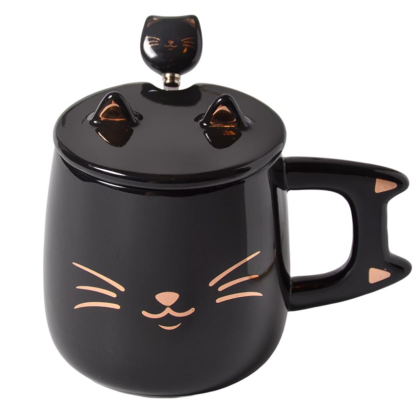 Минимализм и очарование в одном — эта чёрная керамическая чашка с кошачьей темой создана для т..