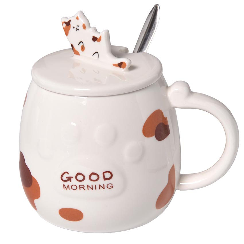 Тепло, уют и немного озорства — всё это воплощено в этой керамической чашке, оформленной в отт..