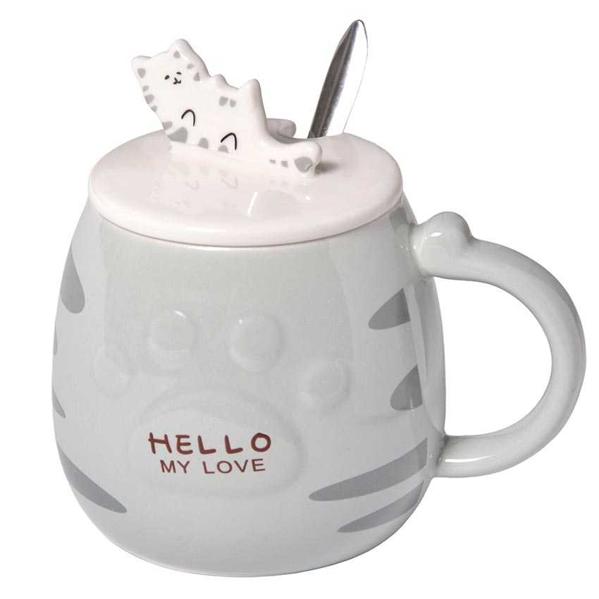 Эта очаровательная чашка выполнена в тёплом сером оттенке с полосками, напоминающими мягкую шерсть л..