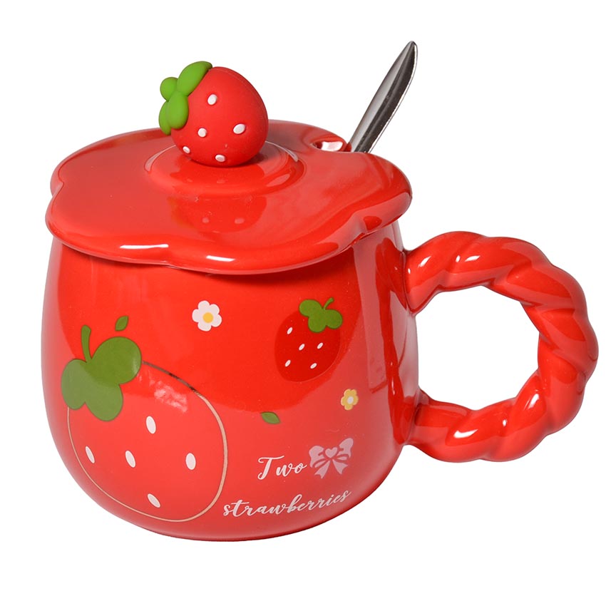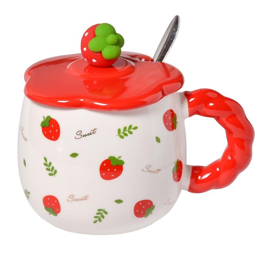 Яркая и эффектная, эта красная керамическая чашка с клубничным настроением создана для тех, кто люби..