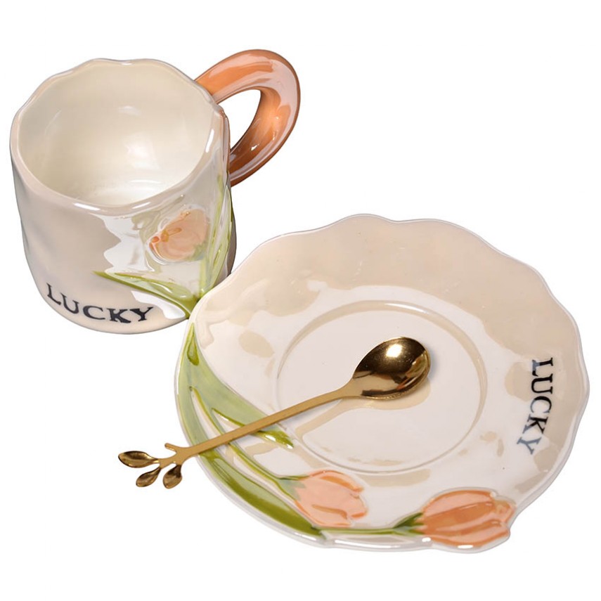— Комплектация: чашка, блюдце, металлическая ложка с декоративной веточкой