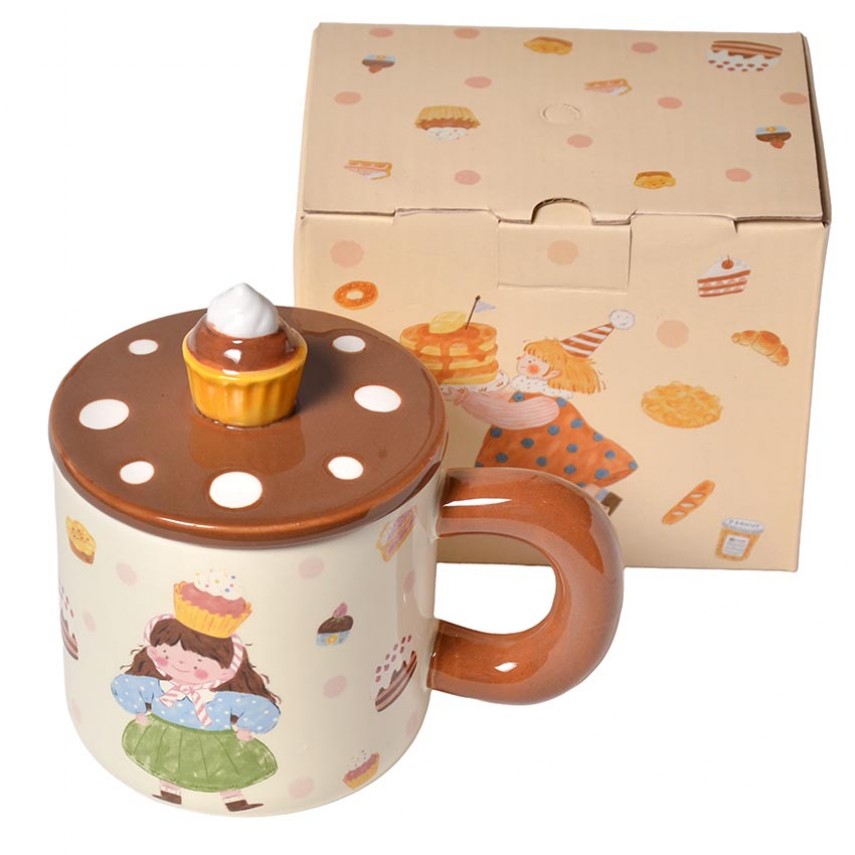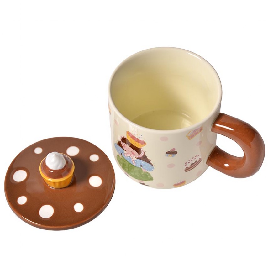 Особое очарование чашке придаёт объёмный декор на крышке в виде капкейка — с глазурью, кремом и вишенкой сверху. Настоящее удовольствие для глаз и идеальный компаньон для ароматного кофе, чая или какао.