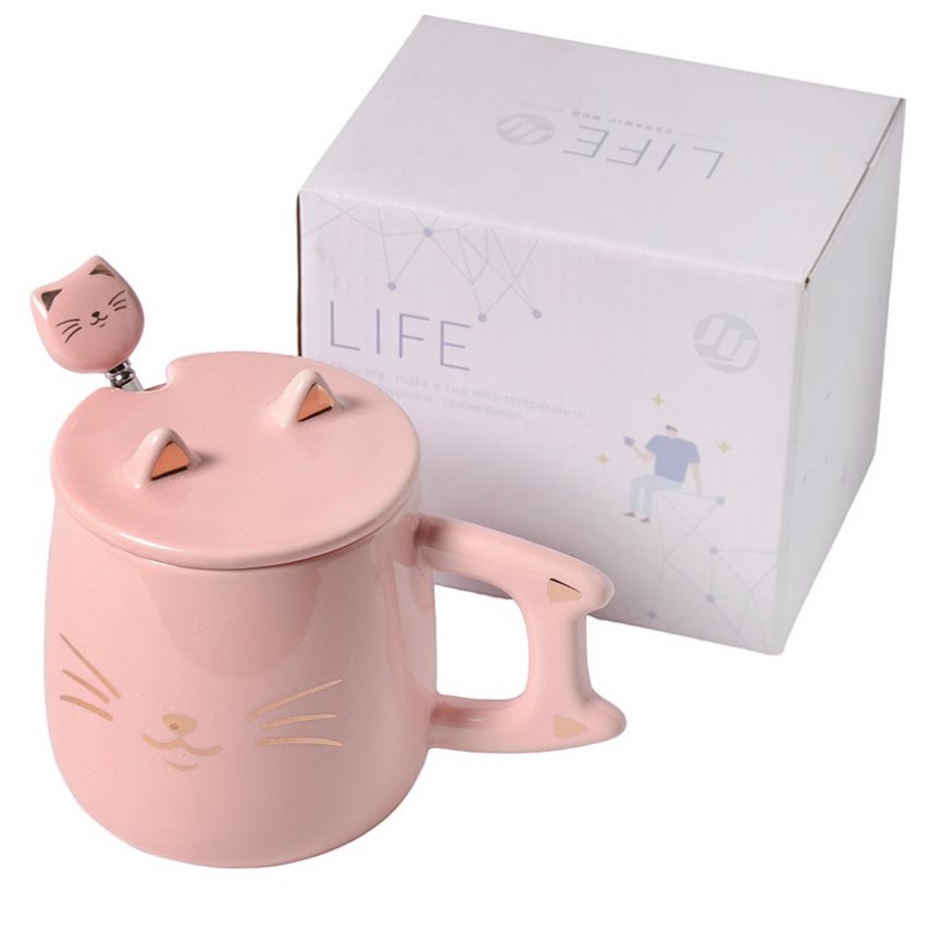 Керамическая чашка «Розовый котик», 400 мл