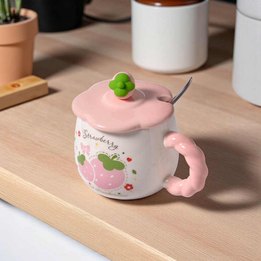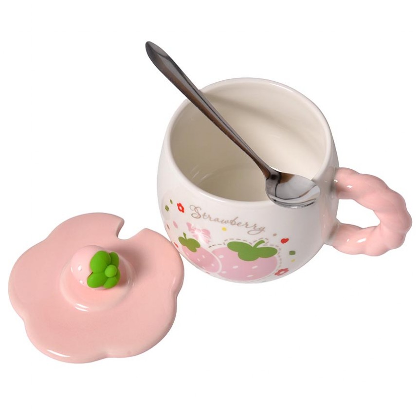 Особое внимание заслуживает объёмный декор на крышке в виде клубники, который делает дизайн ещё более живым и оригинальным. В комплект входит металлическая ложка, идеально подходящая для повседневного использования.