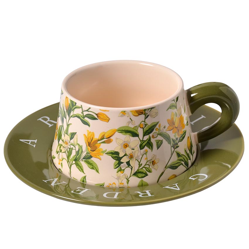 Керамическая чашка с блюдцем «Зеленый сад», 260 мл